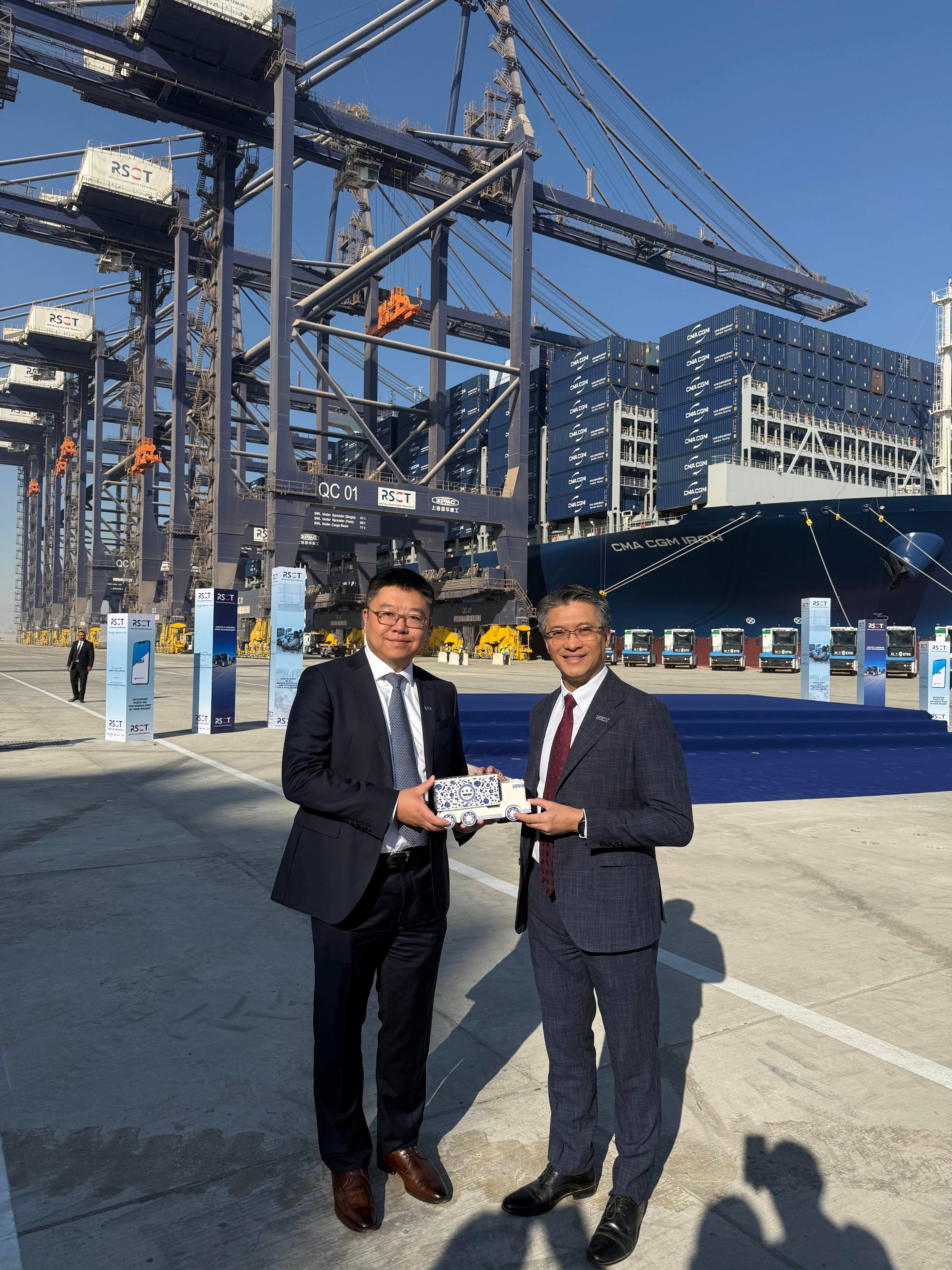阿拉伯埃及共和国总理穆斯塔法·马德布利,工业发展副总理及交通、贸易和工业部长卡迈勒·瓦齐尔,以及苏伊士运河经济区管理总局主席瓦利德·贾马勒丁,以及来自全球海事行业的高层领导,包括和记港口(Hutchison Ports)欧洲董事总经理郑振训先生、中远海运港口(COSCO SHIPPING Ports)主席朱涛先生、达飞集团(CMA CGM)资产执行副总裁克莉丝汀‧卡布女士、西井科技(Westwell)董事长谭黎敏先生等出席此次开港揭幕仪式。